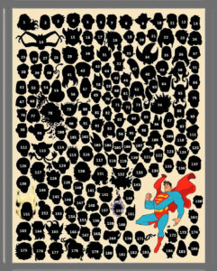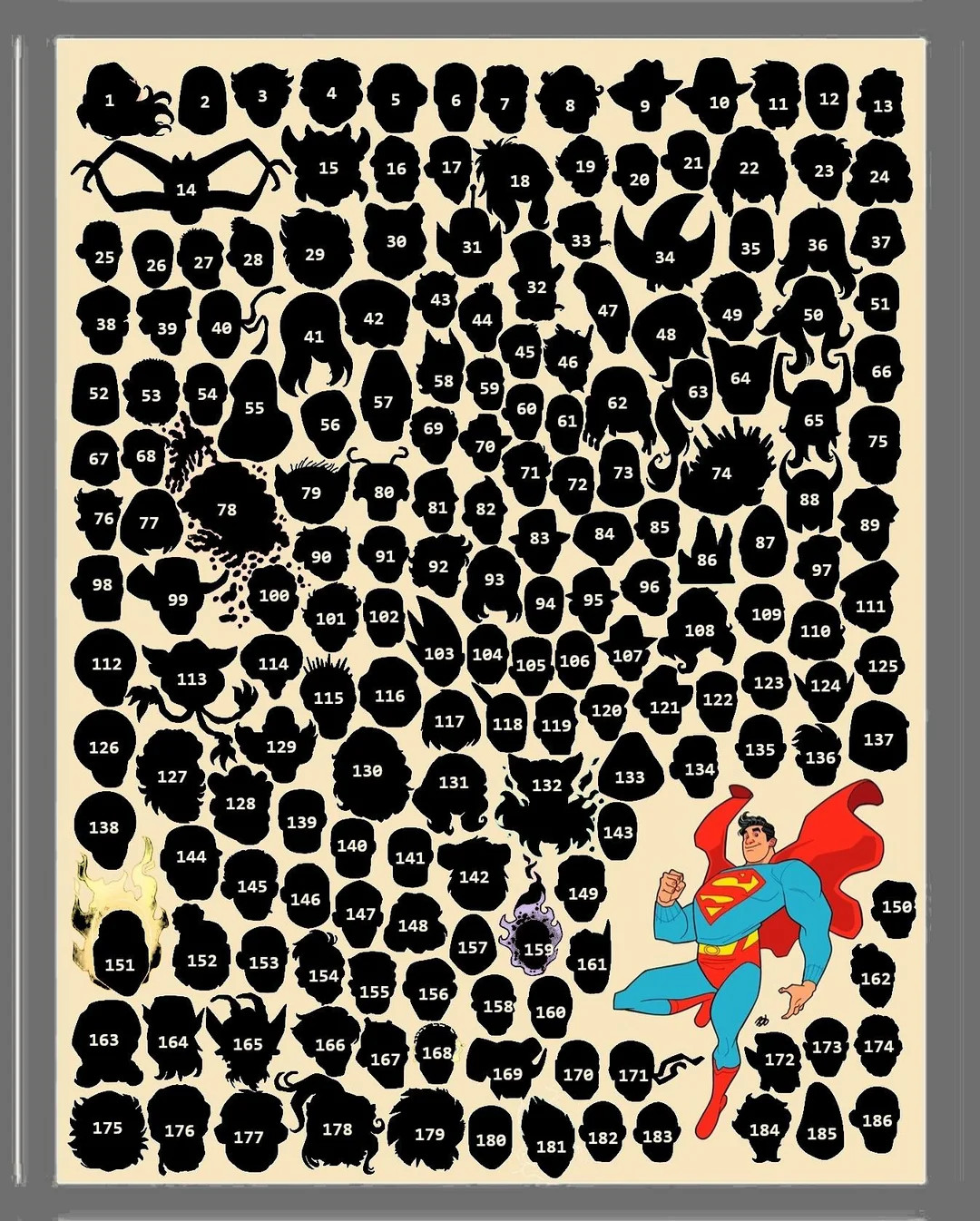An artist out there named Dave Bardin draws a lot of rogues type posters for various characters or teams, and of course he did Superman. And then he doubled down and did a much bigger one for Superman. I’m sad to admit, I don’t recognize many of them, so I thought it might be fun to try and identify as I move along in this reading project.